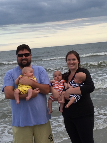 We had originally discussed stopping for the night about halfway through the drive but since they tolerate their car seats so well we decided to try and make the whole drive in a day. We left early in the morning and took about 10 hours total, making a long pit stop at a Cracker Barrel somewhere in Georgia. It was our first time feeding and changing them in a restaurant and we were a bit apprehensive about how it was going to work trying to feed 3 fussy babies with only 2 sets of hands. But they barely fussed at all and were Mr. Populars amongst the late afternoon dining crowd. They had many admirers who stopped by our table to see them, but thankfully we only had one episode of errant touching by a well-meaning grandma (she also directed us to "take these babies to church")!